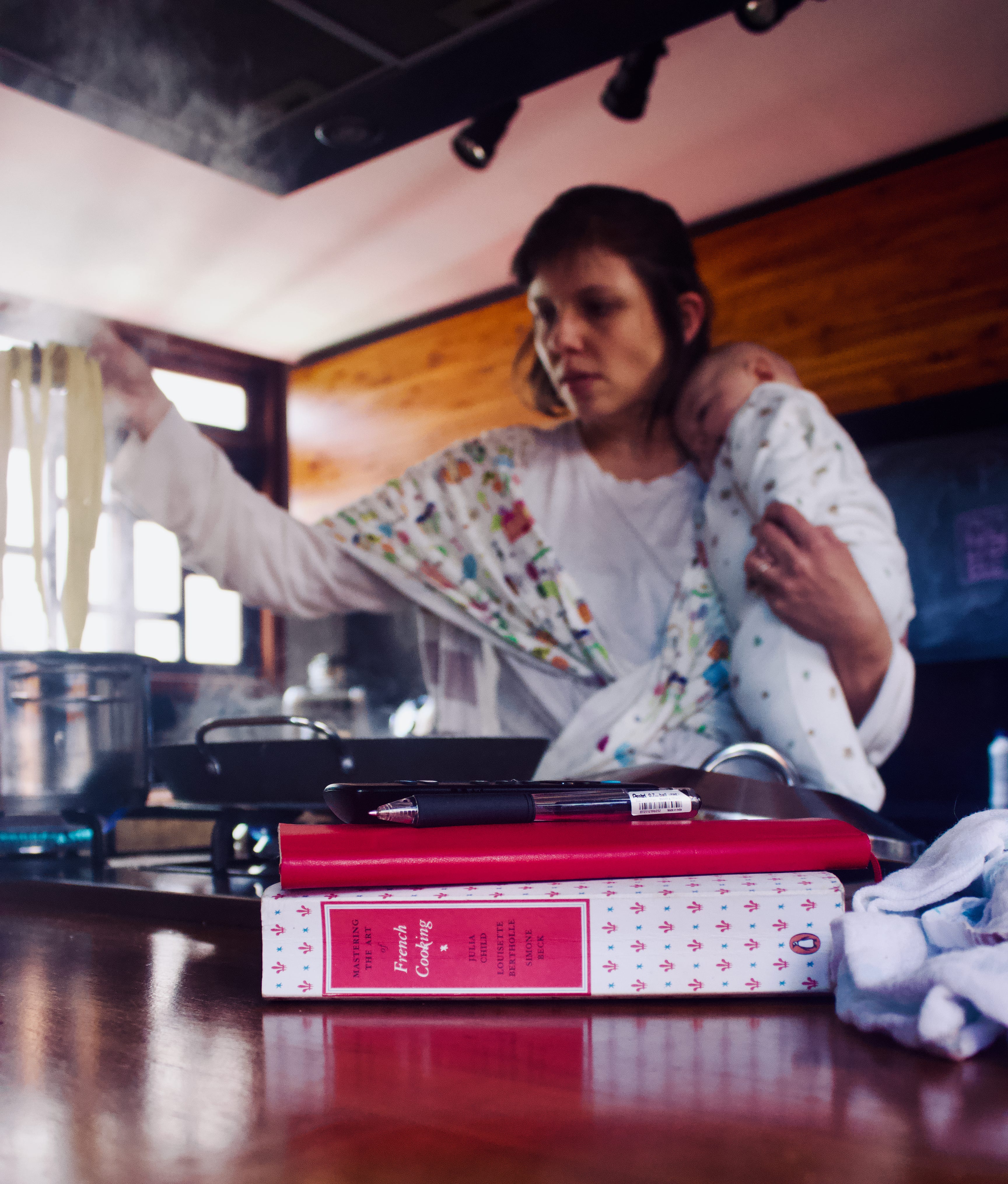 De fato, cozinhar está entre as minhas grandes predileções - não só em casa, na vida - a ponto de até cogitar seguir carreira (o que, dos tempos de Julia aos nossos, seria tão fácil como ser uma mulher na pesquisa em engenharia). Adoro colecionar e testar receitas, surpreender convivas com cardápios totalmente elaborados em casa, carimbar o tal passaporte proposto por Julia, com temperos e especiarias. E embora não sem prazer, recentemente eu tenha retornado às panelas acompanhada de um chumbinho de quase 7 kg, no colo ou sling (quando ele fica - dicas?!), paira sobre mim a dúvida se o que me trouxe de volta foi a saudade, oriunda da tal aptidão natural, gosto, até; ou se é decorrente do mal e velho patriarcado - predisposta diante de uma eventual obrigação conjugal, privilégio meu, auto-imposta.