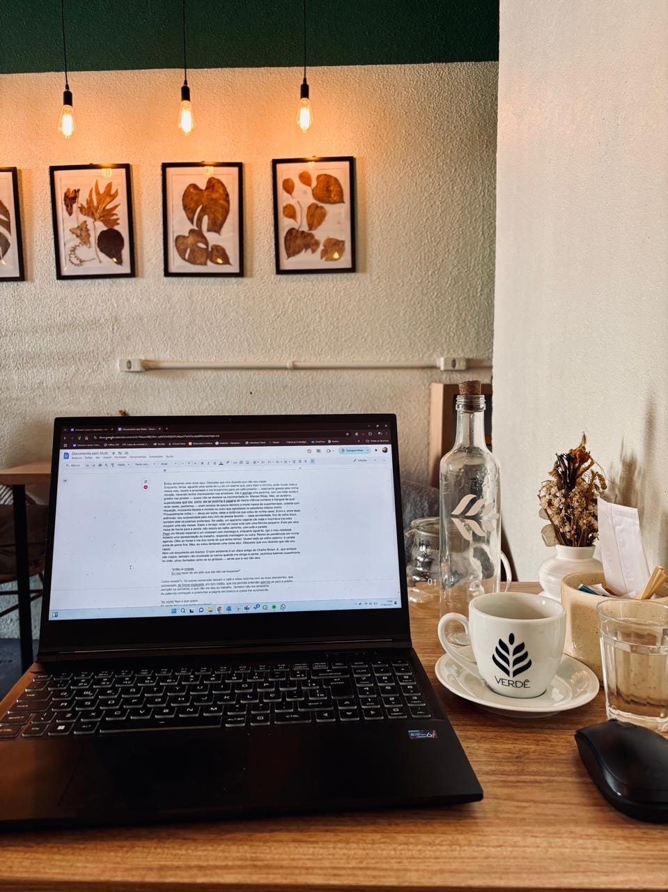 O celular chama, com uma mensagem do Lu. Acabou o exame e também esses minutos de experimentação. Fecho o notebook. Abro, novamente, para um registro fotográfico. Pago a minha conta. E, ainda que ansiosa pelo resultado (dele), volto em uma caminhada saltitante para a clínica, ao constatar a pequena vitória dessa experimentação (ainda que escrever em um café charmoso, no horário do almoço de uma terça ensolarada, mesmo que direto do notebook, tenha sim a sua poesia).